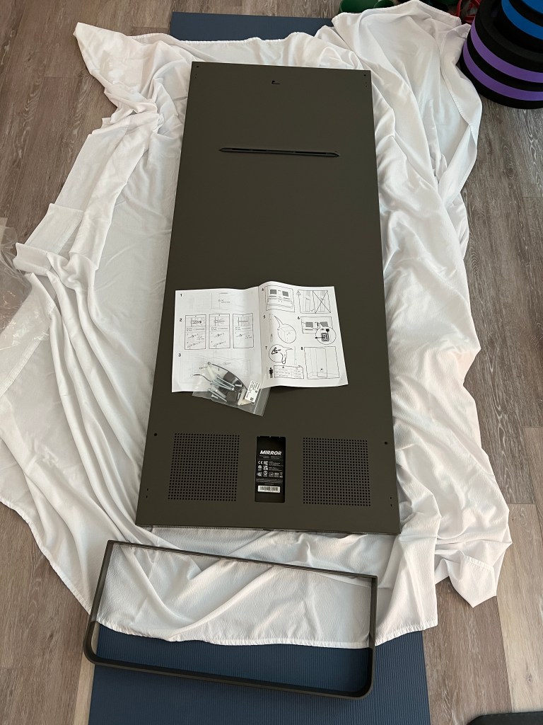 The Mirror itself is a quality piece of hardware (with the exception of the on and off button, which sometimes doesn’t work.) They deliver it with a delivery service (it’s not a UPS-like delivery, it’s more like furniture delivery) and you schedule a delivery window with the company. They bring it to to your door but they don’t do any installation unless you pay an extra $250, which I didn’t do. Installation for the Mirror leaning against the wall option was easy (just use a screwdriver to attach the bottom rectangular metal stand and lean it against the wall after drilling a hole into the wall to anchor the Mirror in case it slips.) However, I think it was 70 pounds or something and it’s very long so moving it around by myself was a workout itself; I kind of just shimmied it around to the right spot.