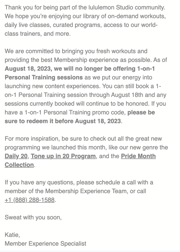 - The pricing is still $39/month for the Mirror with the Peloton content, and they have kept the lululemon Studio content that was previously created for the Mirror, but I don’t think they are creating new content.