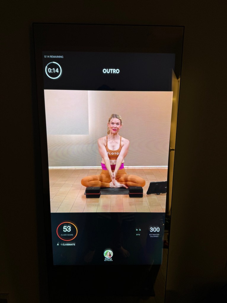 The calories you burned count seems to be wildly inflated on The Mirror, with a 30-minute non-sweaty yoga session logging some 100 calories, whereas on Peloton, that requires at least a 20-minute cycling class where your heart rate is above baseline and you sweat at least a little bit. I don’t pay attention to this number much on either platform.
